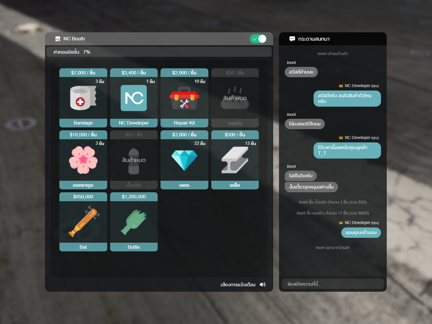 – ระบบฝากขายให้ NPC มายืนแทน (ใส่ Ped List แยกแต่ละ Item ได้)