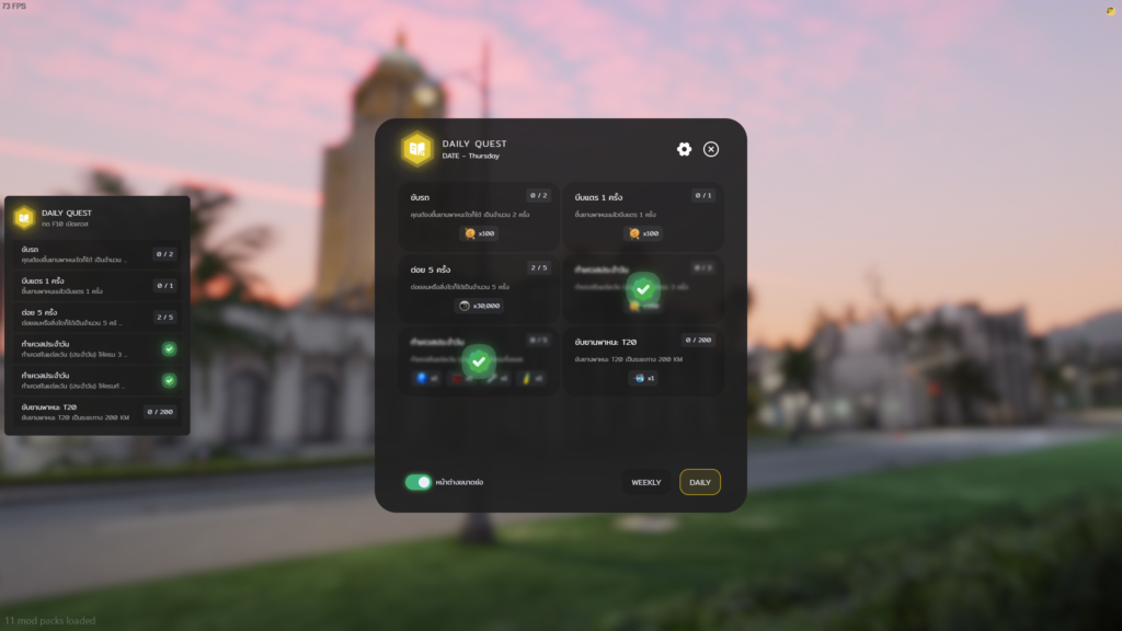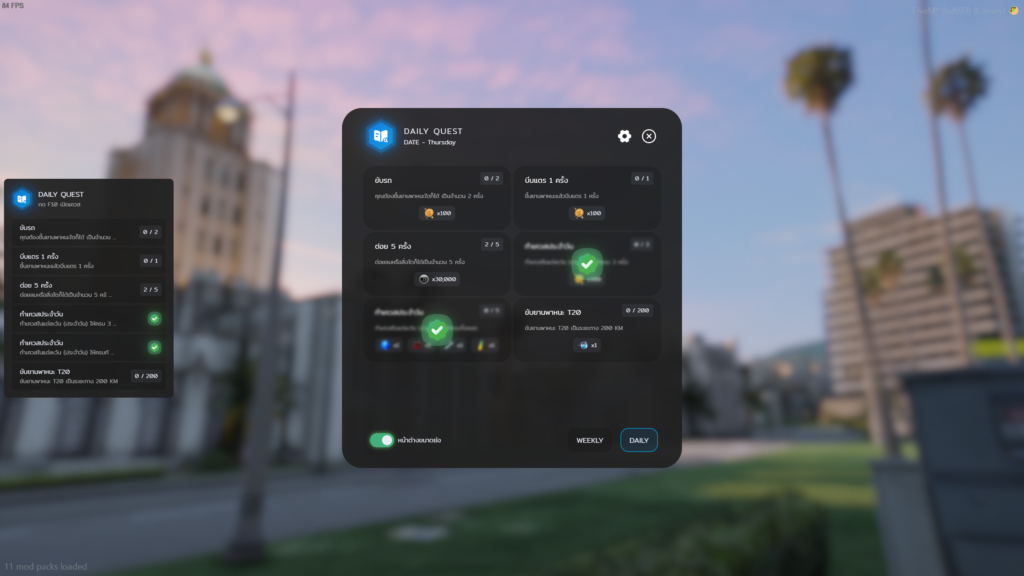 Categories Posted inin ScriptFiveM เมื่อเราต้องการระบบ Quest รายวัน หรือ รายสัปดาห์ GTA V FiveMPosted byby Support26 ธันวาคม 20230 Comments อีกหนึ่งสคริปต์ที่ควรมีติดไว้ในเมืองเมื่อเราทำเมือง เสริมกิจกรรมให้เมืองมีกิจกรรมน่าดึงดูด และทำให้ผู้เล่น ผมขออนุญาติแชร์ระบบร้านนี้มาแนะนำให้เพื่อนๆลองไปติดต่อหาซื้อกับเจ้าของร้านกันเลยนะครับ Discord YouTube 00 (Visited 1 times, 1 visits today)